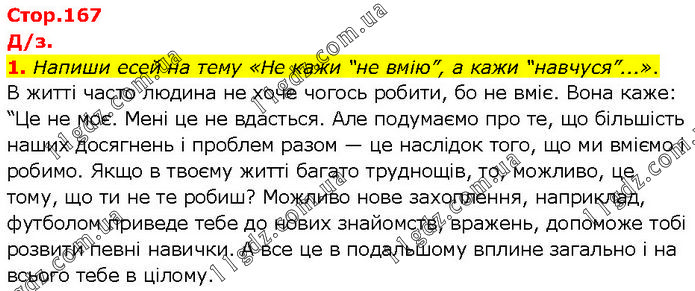 Напиши есей на тему «Не кажи “не вмію”, а кажи “навчуся”...». В житті часто людина не хоче чогось робити, бо не вміє. Вона каже: “Це не моє. Мені це не вдасться. Але подумаємо про те, що більшість наших досягнень і проблем разом — це наслідок того, що ми вміємо і робимо. Якщо в твоєму житті багато труднощів, то, можливо, це тому, що ти не те робиш? Можливо нове захоплення, наприклад, футболом приведе тебе до нових знайомств, вражень, допоможе тобі розвити певні навички. А все це в подальшому вплине загально і на всього тебе в цілому.