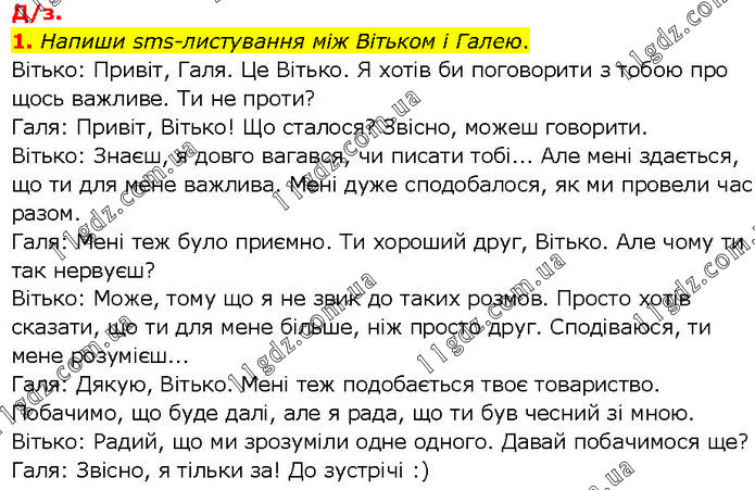 Напиши sms-листування між Вітьком і Галею. Вітько: Привіт, Галя. Це Вітько. Я хотів би поговорити з тобою про щось важливе. Ти не проти? Галя: Привіт, Вітько! Що сталося? Звісно, можеш говорити. Вітько: Знаєш, я довго вагався, чи писати тобі... Але мені здається, що ти для мене важлива. Мені дуже сподобалося, як ми провели час разом. Галя: Мені теж було приємно. Ти хороший друг, Вітько. Але чому ти так нервуєш? Вітько: Може, тому що я не звик до таких розмов. Просто хотів сказати, що ти для мене більше, ніж просто друг. Сподіваюся, ти мене розумієш... Галя: Дякую, Вітько. Мені теж подобається твоє товариство. Побачимо, що буде далі, але я рада, що ти був чесний зі мною. Вітько: Радий, що ми зрозуміли одне одного. Давай побачимося ще? Галя: Звісно, я тільки за! До зустрічі :)
