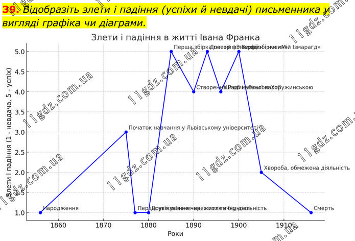 Відобразіть злети і падіння (успіхи й невдачі) письменника у вигляді графіка чи діаграми.
