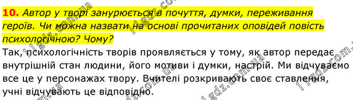 Автор у творі занурюється в почуття, думки, переживання героїв. Чи можна назвати на основі прочитаних оповідей повість психологічною? Чому? Так, психологічність творів проявляється у тому, як автор передає внутрішній стан людини, його мотиви і думки, настрій. Ми відчуваємо все це у персонажах твору. Вчителі розкривають своє ставлення, учні відчувають це відповідно.