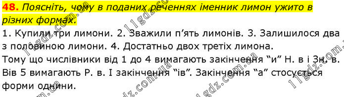 Поясніть, чому в поданих реченнях іменник лимон ужито в різних формах. 1. Купили три лимони. 2. Зважили п’ять лимонів. 3. Залишилося два з половиною лимони. 4. Достатньо двох третіх лимона. Тому що числівники від 1 до 4 вимагають закінчення “и” Н. в і Зн. в. Вів 5 вимагають Р. в. І закінчення “ів”. Закінчення “а” стосується форми однини.