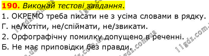 Виконай тестові завдання. 1. ОКРЕМО треба писати не з усіма словами в рядку. Г. не/хотіти, не/спіймати, не/звикати. 2. Орфографічну помилку допущено в реченні. Б. Не має приповідки без правди.