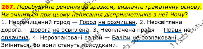 Перебудуйте речення за зразком, визначте граматичну основу. Чи зміниться при цьому написання дієприкметників з не? Чому? 1. Нерозчищений город — Город не розчищен. 2. Неосвітлена дорога. – Дорога не освітлена. 3. Неоплачена праця — Праця не оплачена. 4. Нерозпаковані валізи — Валізи не розпаковані. Зміниться, бо вони стануть присудками.
