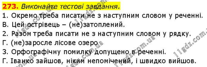 Виконайте тестові завдання. 1. Окремо треба писати не з наступним словом у реченні. В. Цей острівець – (не)затоплений. 2. Разом треба писати не з наступним словом у рядку. Г. (не)заросле лісове озеро 3. Орфографічну помилку допущено в реченні. Г. Іванко зайшов, ніким непомічений, і швидко вийшов.