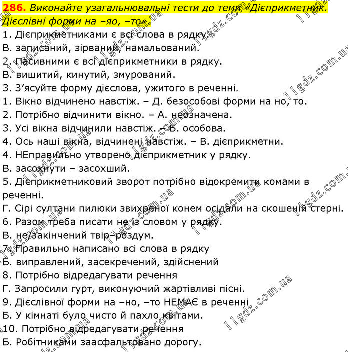 Дієприкметник. Дієслівні форми » 286