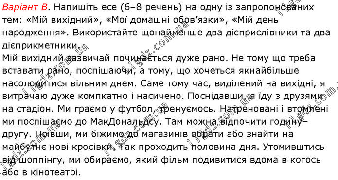 Виконайте завдання варіантів. Варіант А. Уявіть, що ви намагаєтесь умовити друга / подругу позичити вам підручник (енциклопедію, велосипед), але при цьому учасник / учасниця діалогу намагається ввічливо вам відмовити, наводячи переконливі аргументи. Складіть і запишіть діалог (5–8 реплік), можливий у цій ситуації. Використайте щонайменше два дієприслівники. – Дарино, даси мені “Біологію” до завтра? Я вчора, збираючись від бабусі додому, забула свою там. – Я би дуже хотіла тобі дати цю книгу, але ж і мені потрібно готуватися до уроків. Можливо, в Світлани попросиш? Вона відмінниця. – Але я з нею майже не спілкуюся. Навіть немає номера її. – Ви ж друзі на Фейсбук. Гортаючи стрічку, ти обов'язово її побачиш. А живе вона в твоєму ж під'їзді. – Ну, добре, так, мабуть, краще. Варіант Б. Складіть і запишіть діалог (7–10 реплік) з елементами зауважень чи пропозицій із використанням дієприкметників (наприклад: перевірений, не розв’язані вчасно, не виконані належно, не звірені за словником тощо). Не викладайте в групі однокласників виконані домашні завдання. По–перше, вони можуть бути не виконаними належно, а діти спишуть. По–друге, є багато тем з англійської, де потрібно самому опрацьовувати матеріал. А викладати слова, не звірені зі словником, неправильно. Домашні завдання вчитель дає нам для самоопрацювання. Якщо навіть вони не розв'язані вчасно, то це не проблема, а знак, що вам потрібно більше уваги і часу придідляти навчанню.