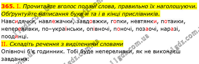 І. Прочитайте вголос подані слова, правильно їх наголошуючи. Обґрунтуйте написання букв и та і в кінці прислівників. Навсидячки, навлежачки, завдовжки, гопки, невтямки, потаики, непереливки, по–українськи, опівночі, поночі, позаочі, наразі, поодинці. II. Складіть речення з виділеними словами Опівночі б'є годинник. Тобі буде непереливки, як не виконаєш завдання.