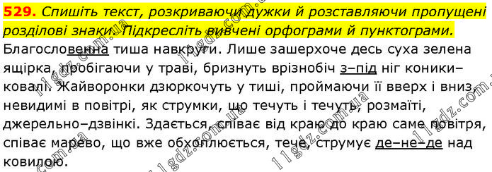 Спишіть текст, розкриваючи дужки й розставляючи пропущені розділові знаки. Підкресліть вивчені орфограми й пунктограми. Благословенна тиша навкруги. Лише зашерхоче десь суха зелена ящірка, пробігаючи у траві, бризнуть врізнобіч з–під ніг коники–ковалі. Жайворонки дзюркочуть у тиші, проймаючи її вверх і вниз, невидимі в повітрі, як струмки, що течуть і течуть, розмаїті, джерельно–дзвінкі. Здається, співає від краю до краю саме повітря, співає марево, що вже обхоплюється, тече, струмує де–не–де над ковилою.