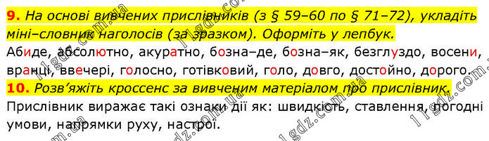 МОРФОЛОГІЯ. ОРФОГРАФІЯ § 22 - § 88 » §.71 (9-10)