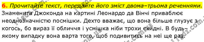 Прочитайте текст, передайте його зміст двома–трьома реченнями. Знаменита Джоконда на картині Леонардо да Вінчі приваблює неоднозначністю посмішки. Дехто вважає, що вона більше глузує з когось, бо вираз її обличчя і усмішка ніби трохи єхидні. В будь–якому випадку вона варта того, щоб подивитись на неї ще раз.