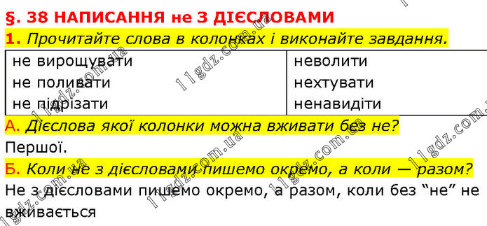 Прочитайте слова в колонках і виконайте завдання. не вирощувати не поливати не підрізати неволити нехтувати ненавидіти А. Дієслова якої колонки можна вживати без не? Першої. Б. Коли не з дієсловами пишемо окремо, а коли — разом? Не з дієсловами пишемо окремо, а разом, коли без “не” не вживається