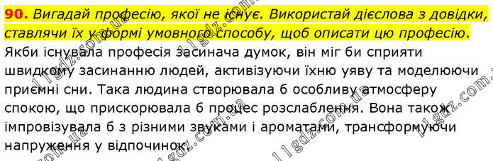 Вигадай професію, якої не існує. Використай дієслова з довідки, ставлячи їх у формі умовного способу, щоб описати цю професію. Якби існувала професія засинача думок, він міг би сприяти швидкому засинанню людей, активізуючи їхню уяву та моделюючи приємні сни. Така людина створювала б особливу атмосферу спокою, що прискорювала б процес розслаблення. Вона також імпровізувала б з різними звуками і ароматами, трансформуючи напруження у відпочинок.