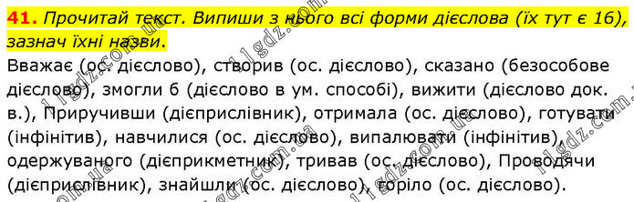Прочитай текст. Випиши з нього всі форми дієслова (їх тут є 16), зазнач їхні назви. Вважає (ос. дієслово), створив (ос. дієслово), сказано (безособове дієслово), змогли б (дієслово в ум. способі), вижити (дієслово док. в.), Приручивши (дієприслівник), отримала (ос. дієслово), готувати (інфінітив), навчилися (ос. дієслово), випалювати (інфінітив), одержуваного (дієприкметник), тривав (ос. дієслово), Проводячи (дієприслівник), знайшли (ос. дієслово), горіло (ос. дієслово).