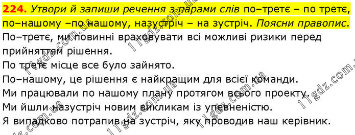 Утвори й запиши речення з парами слів по–третє – по третє, по–нашому –по нашому, назустріч – на зустріч. Поясни правопис. По–третє, ми повинні враховувати всі можливі ризики перед прийняттям рішення. По третє місце все було зайнято. По–нашому, це рішення є найкращим для всієї команди. Ми працювали по нашому плану протягом всього проекту. Ми йшли назустріч новим викликам із упевненістю. Я випадково потрапив на зустріч, яку проводив наш керівник.