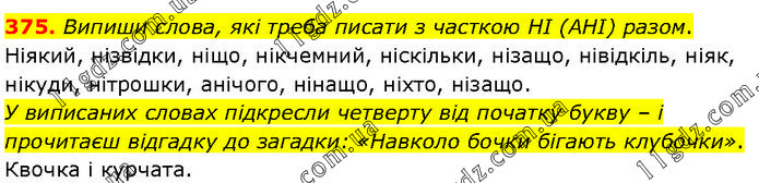 Випиши слова, які треба писати з часткою НІ (АНІ) разом. Ніякий, нізвідки, ніщо, нікчемний, ніскільки, нізащо, нівідкіль, ніяк, нікуди, нітрошки, анічого, нінащо, ніхто, нізащо. У виписаних словах підкресли четверту від початку букву – і прочитаєш відгадку до загадки: «Навколо бочки бігають клубочки». Квочка і курчата.
