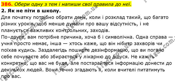 Обери одну з тем і напиши свої правила до неї. 2. Як не піти в школу. Для початку потрібно обрати день, коли і розклад такий, що багато різних уроків, щоб менше думали про вашу відсутність, і не планується важливих контрольних, заходів. По–друге, вам потрібне причина, хоча б і символічна. Одна справа — учня просто немає, інша — хтось каже, що він нібито захворів чи поїхав кудись. Заздалегідь поширте дезінформацію, що ви погано себе почуваєте або збираєтеся у лікарню до дідуся. Не кажіть конкретно, що вас не буде, але постарайтеся інформацію донести до декількох людей. Вони точно згадають її, коли вчителі питатимуть про вас.