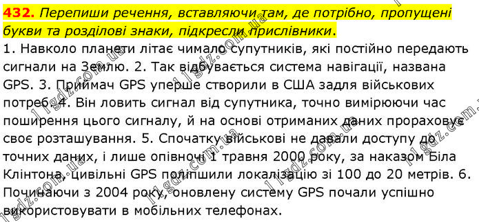 Перепиши речення, вставляючи там, де потрібно, пропущені букви та розділові знаки, підкресли прислівники. 1. Навколо планети літає чимало супутників, які постійно передають сигнали на Землю. 2. Так відбувається система навігації, названа GPS. 3. Приймач GPS уперше створили в США задля військових потреб. 4. Він ловить сигнал від супутника, точно вимірюючи час поширення цього сигналу, й на основі отриманих даних прораховує своє розташування. 5. Спочатку військові не давали доступу до точних даних, і лише опівночі 1 травня 2000 року, за наказом Біла Клінтона, цивільні GPS поліпшили локалізацію зі 100 до 20 метрів. 6. Починаючи з 2004 року, оновлену систему GPS почали успішно використовувати в мобільних телефонах.