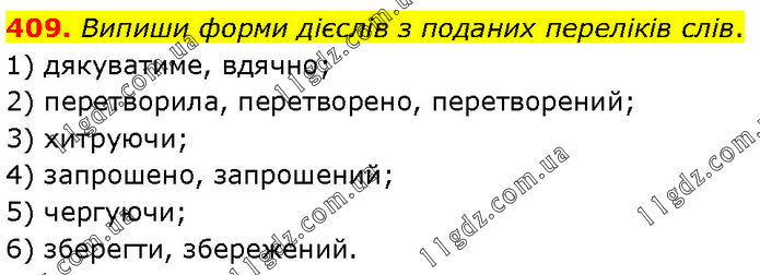Випиши форми дієслів з поданих переліків слів. 1) дякуватиме, вдячно; 2) перетворила, перетворено, перетворений; 3) хитруючи; 4) запрошено, запрошений; 5) чергуючи; 6) зберегти, збережений.