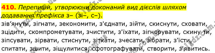 Перепиши, утворюючи доконаний вид дієслів шляхом додавання префікса з– (зі–, с–). зів’янути, зігнати, зекономити, з'єднати, зійти, скиснути, сховати, зцідити, скомпрометувати, зчистити, з'їхати, зігнорувати, скину ти, зіпсувати, зірвати, стиснути, зіткати, зчесати, зібрати, з'їсти, спитати, зшити, зіщулитися, сфотографувати, створити, з'явитись.