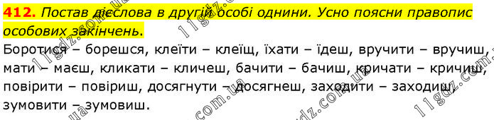 Постав дієслова в другій особі однини. Усно поясни правопис особових закінчень. Боротися – борешся, клеїти – клеїщ, їхати – їдеш, вручити – вручиш, мати – маєш, кликати – кличеш, бачити – бачиш, кричати – кричиш, повірити – повіриш, досягнути – досягнеш, заходити – заходиш, зумовити – зумовиш.