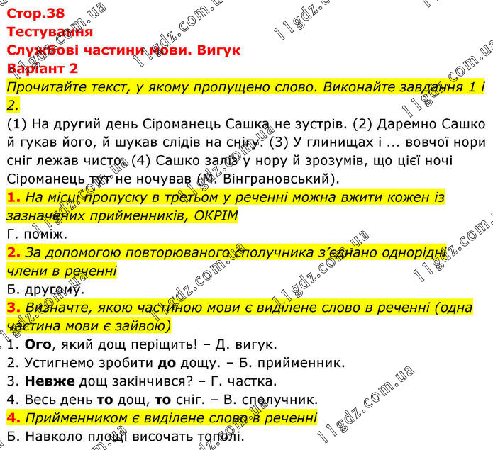 СЛУЖБОВІ ЧАСТИНИ МОВИ. ВИГУК » В1 (1-4)