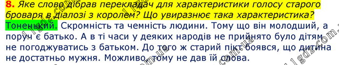Яке слово дібрав перекладач для характеристики голосу старого броваря в діалозі з королем?
