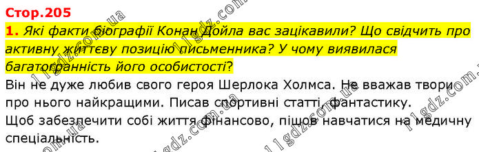 Які факти біографії Конан Дойла вас зацікавили? Що свідчить про активну життєву позицію письменника? У чому виявилася багатогранність його особистості? Він не дуже любив свого героя Шерлока Холмса. Не вважав твори про нього найкращими. Писав спортивні статті, фантастику. Щоб забезпечити собі життя фінансово, пішов навчатися на медичну спеціальність.