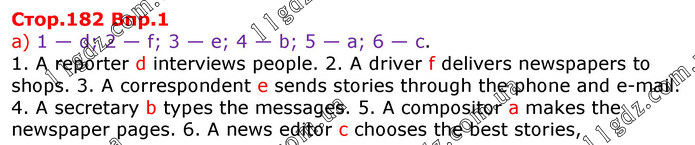 a) 1 — d; 2 — f; 3 — e; 4 — b; 5 — a; 6 — c. 1. A reporter d interviews people. 2. A driver f delivers newspapers to shops. 3. A correspondent e sends stories through the phone and e-mail. 4. A secretary b types the messages. 5. A compositor a makes the newspaper pages. 6. A news editor c chooses the best stories,