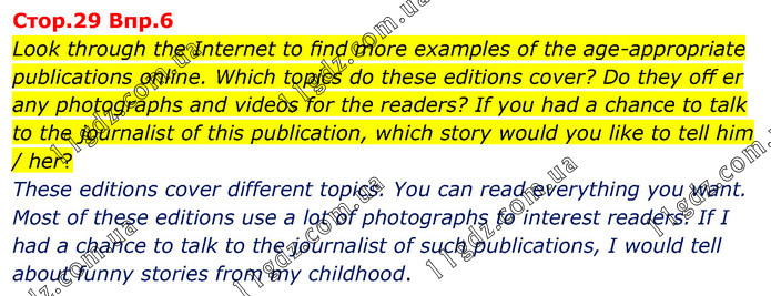 Look through the Internet to find more examples of the age-appropriate publications online. Which topics do these editions cover? Do they off er any photographs and videos for the readers? If you had a chance to talk to the journalist of this publication, which story would you like to tell him / her? These editions cover different topics. You can read everything you want. Most of these editions use a lot of photographs to interest readers. If I had a chance to talk to the journalist of such publications, I would tell about funny stories from my childhood.