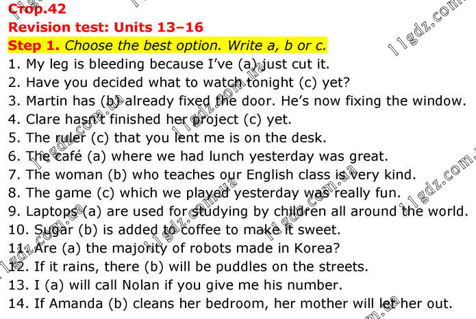 REVISION TEST: UNITS 13-16 » Стр.42 (1)