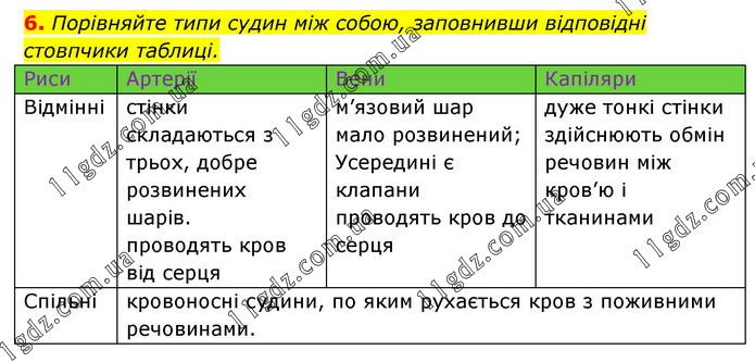 Порівняйте типи судин між собою, заповнивши відповідні стовпчики таблиці.