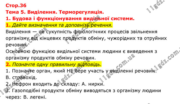 Тема 7. Виділення. Терморегуляція » Стр.36 (1-2)