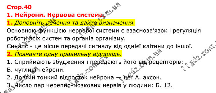 Тема 8. Зв'язок організму. Нервова система » Стр.40 (1-2)