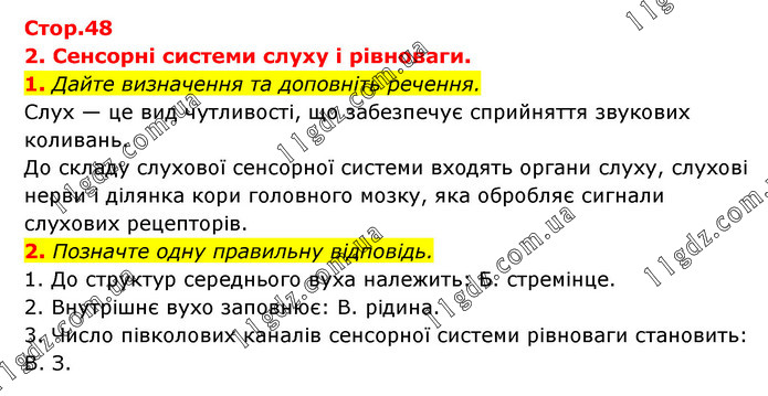 Тема 9. Зв'язок організму. Сенсорні системи » Стр.48 (1-2)
