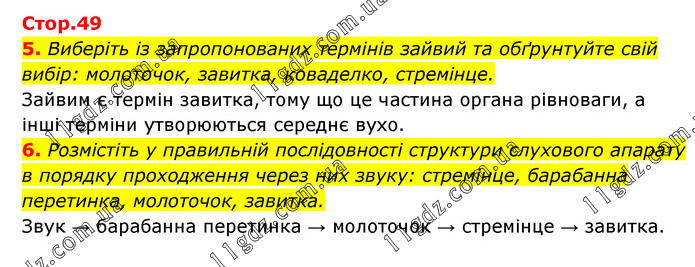 Тема 9. Зв'язок організму. Сенсорні системи » Стр.49 (5-6)