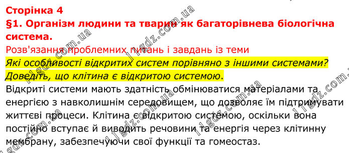 Розв'язання проблемних питань і завдань із теми Які особливості відкритих систем порівняно з іншими системами? Доведіть, що клітина є відкритою системою. Відкриті системи мають здатність обмінюватися матеріалами та енергією з навколишнім середовищем, що дозволяє їм підтримувати життєві процеси. Клітина є відкритою системою, оскільки вона постійно вступає й виводить речовини та енергія через клітинну мембрану, забезпечуючи свої функції та гомеостаз.