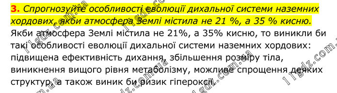 3. Спрогнозуйте особливості еволюції дихальної системи наземних хордових, якби атмосфера Землі містила не 21 %, а 35 % кисню. Якби атмосфера Землі містила не 21%, а 35% кисню, то виникли би такі особливості еволюції дихальної системи наземних хордових: підвищена ефективність дихання, збільшення розміру тіла, виникнення вищого рівня метаболізму, можливе спрощення деяких структур, а також виник би ризик гіпероксії.
