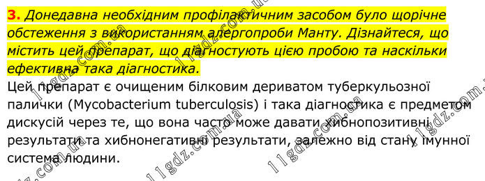 3. Донедавна необхідним профілактичним засобом було щорічне обстеження з використанням алергопроби Манту. Дізнайтеся, що містить цей препарат, що діагностують цією пробою та наскільки ефективна така діагностика. Цей препарат є очищеним білковим дериватом туберкульозної палички (Mycobacterium tuberculosis) і така діагностика є предметом дискусій через те, що вона часто може давати хибнопозитивні результати та хибнонегативні результати, залежно від стану імунної система людини.