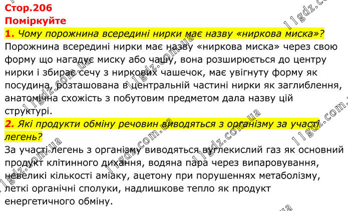 Тема 7. Процеси виділення та терморегуляції » Стр.206 (1-2)