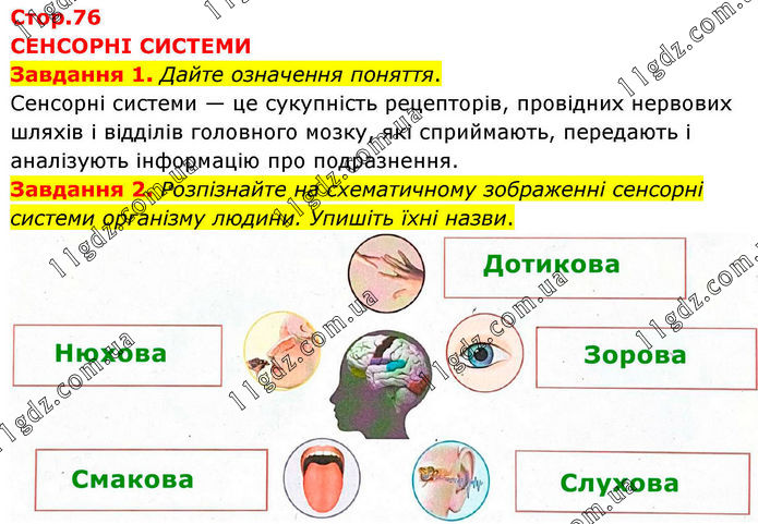 ТЕМА 8. Сенсорні системи » Стр.76 (1-2)