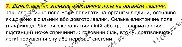 7. Дізнайтеся, чи впливає електричне поле на організм людини. Так, електричне поле може впливати на організм людини, особливо якщо воно є сильним або довготривалим. Сильне електричне поле (наприклад, біля високовольтних ліній або трансформаторних підстанцій) може спричинити: головний біль, втому, дратівливість, легкі порушення сну або нервової системи.