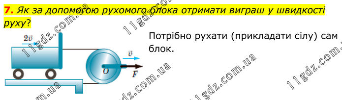 Як за допомогою рухомого блока отримати виграш у швидкості руху? Потрібно рухати (прикладати сілу) сам блок.