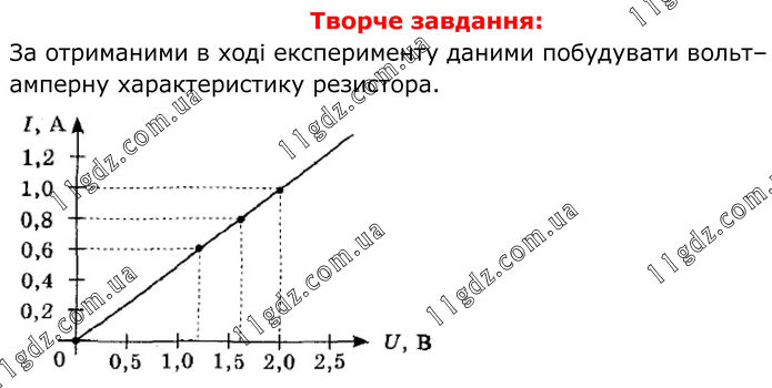 Творче завдання: За отриманими в ході експерименту даними побудувати вольт–амперну характеристику резистора.
