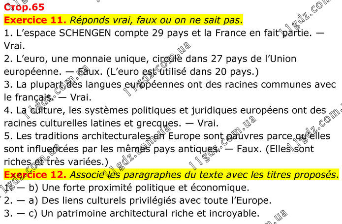 UNITÉ 3 L’UKRAINE. LA FRANCE (la suite) » Стр.65 (11-12)