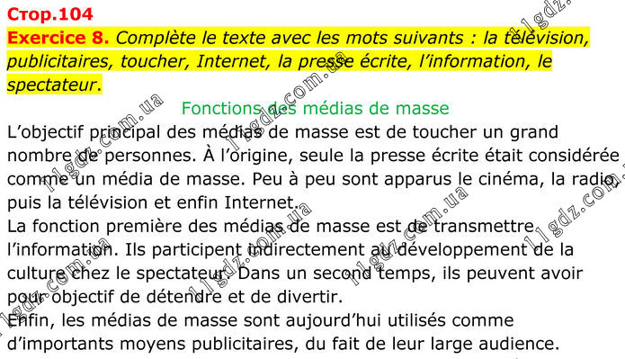 UNITÉ 4 LES MÉDIAS DE MASSE » Стр.104