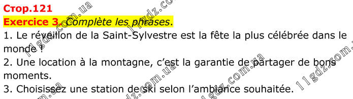 Exercice 3. Complète les phrases. 1. Le réveillon de la Saint-Sylvestre est la fête la plus célébrée dans le monde ! 2. Une location à la montagne, c’est la garantie de partager de bons moments. 3. Choisissez une station de ski selon l’ambiance souhaitée.