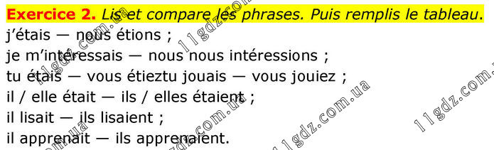 Exercice 2. Lis et compare les phrases. Puis remplis le tableau. j’étais — nous étions ; je m’intéressais — nous nous intéressions ; tu étais — vous étieztu jouais — vous jouiez ; il / elle était — ils / elles étaient ; il lisait — ils lisaient ; il apprenait — ils apprenaient.