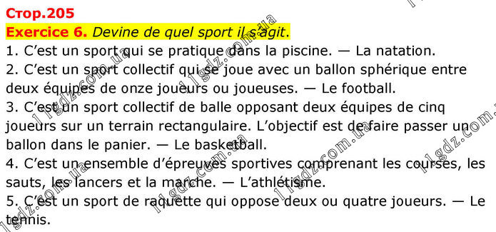 UNITÉ 8 LE SPORT » Стр.205 (6)