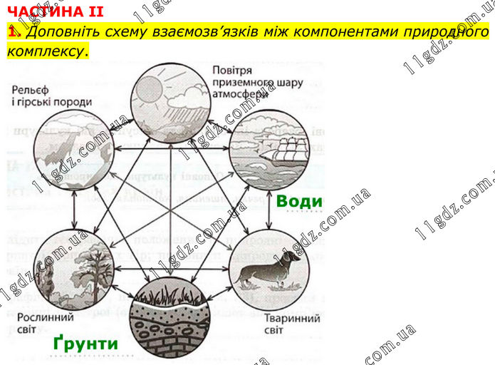 ЧАСТИНА IІ 1. Доповніть схему взаємозв’язків між компонентами природного комплексу.