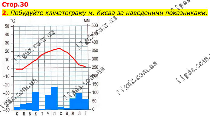 2. Побудуйте кліматограму м. Києва за наведеними показниками.